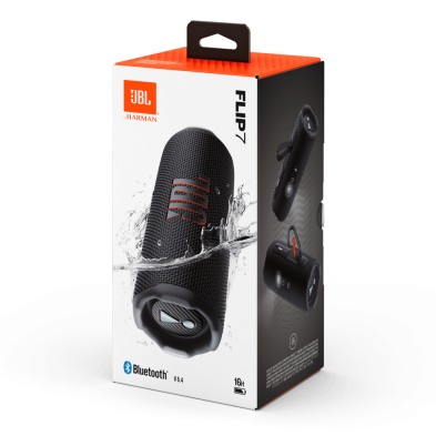 The soundtrack to our life, right in the palm of our hands. The JBL Flip 7 is undefeated JBL sound that travels with us wherever we go. Because music has no boundaries, and neither should we. Whether we're hosting a beach party, relaxing in our backyard, or setting the mood for a cozy night in, the Flip 7 is designed to enhance any experience, anywhere life takes us. And now, our signature sound is bigger and bolder than ever, thanks to JBL's AI Sound Boost. The end result? The Flip 7 leaves our friends and family wondering where all that big, glorious sound could possibly be coming from. But it's not just pretty and powerful. The Flip 7 takes a beating without missing a beat, boasting industry-leading IP68 waterproof, dustproof and drop-proof. Plus, with new Playtime Boost we can enjoy up to 16 hours of playtime—because the moment should only ever stop on our terms. Wouldn't it be great to share the sweet sound of JBL far and wide? Now we can. Effortlessly connect with other Auracast™ enabled JBL speakers to cover more ground (and more ears) with the same playlist, whether we're touring the town with our cycling crew or extending our dinner party to the back patio... and the front yard. In short, this is not the average portable speaker. It's a pint-sized audio boss.