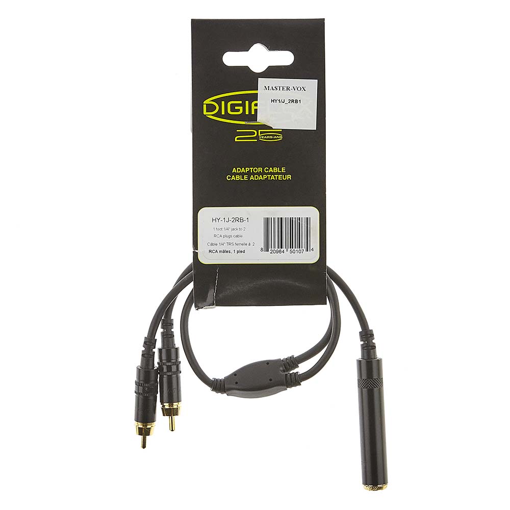 Cable 1 pied - femelle 1/4 mono a 2 fiches RCA