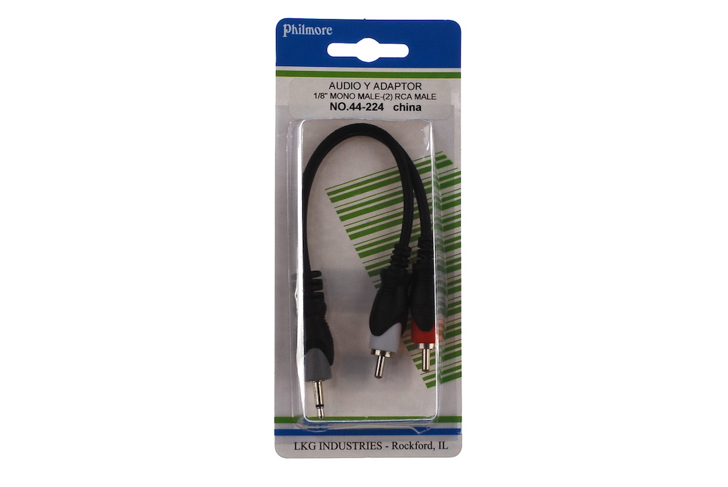 Included: 1x audio Y adaptor ⅛ mono male to 2 RCA male