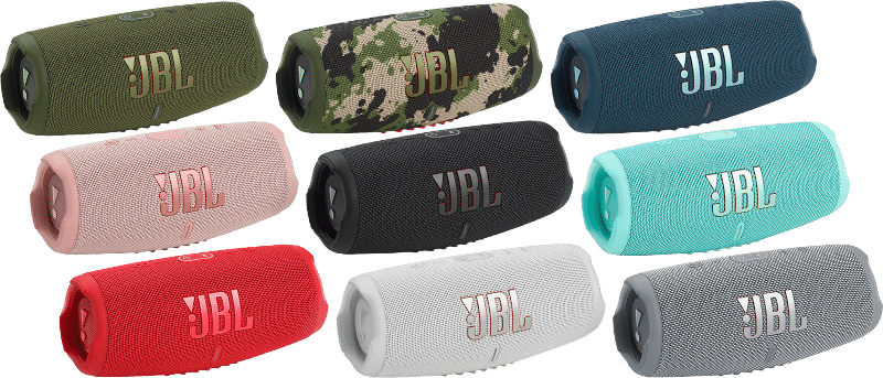 Emportez avec vous la puissance incroyable du Son Pro JBL. La JBL Charge 5 est dotée d’un haut-parleur optimisé de longue portée, d’un haut-parleur haute fréquence séparé et de deux radiateurs de basses JBL, le tout pour un son incroyablement riche et clair. Obtenez ce son typique d’une grande salle, même à l’extérieur.