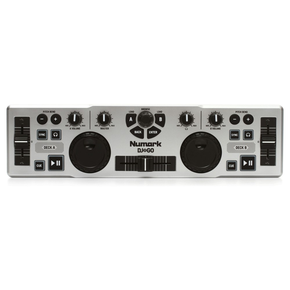 DJ 2 Go is the most portable DJ controller in the world, the easiest way to set up and DJ with your laptop computer and DJ software. All the controls you need are onboard, including a crossfader, jog wheels for each deck, pitch faders, music library navigation controls, and more.
