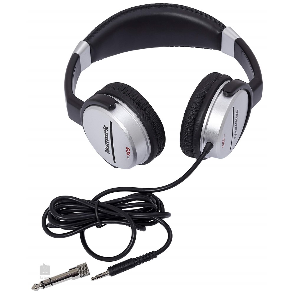 One place a DJ can’t compromise, is in how they hear their mix. The Numark HF-125 headphone set delivers the goods with flexible 7-position independently adjustable dual ear cups, large 40mm Mylar speaker drivers, 6’ tangle-resistant cord with a molded 1/8” TRS connector and a 1/8” to ¼” TRS adapter, and padded headband and ear cups.