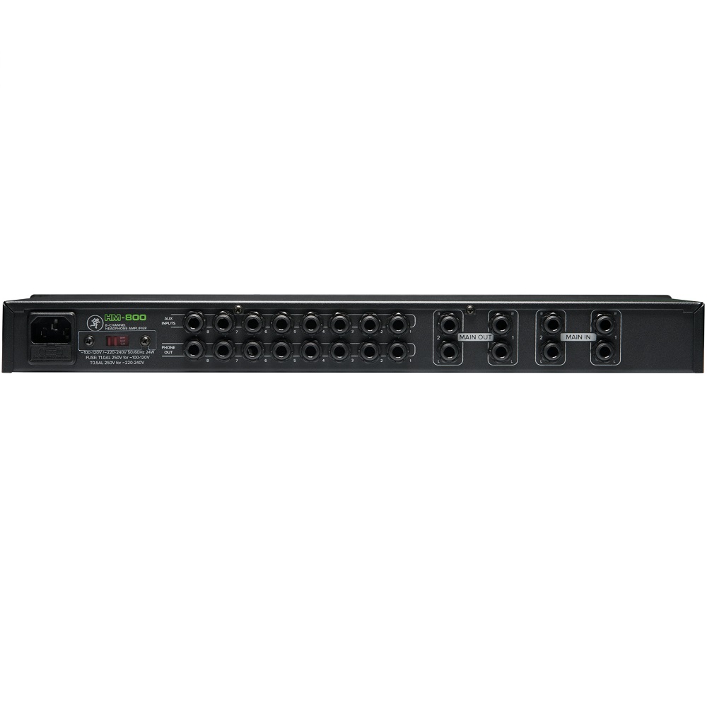 The 19” rackmount HM-800 8-Channel Headphone Amplifier offers up to 10 available mixes with a total of 16 headphone outputs. Perfect for professional applications including studios, Houses of Worship, practice spaces, and more. Featuring 2 discrete main inputs with level control plus stereo outs, aux inputs per channel.
