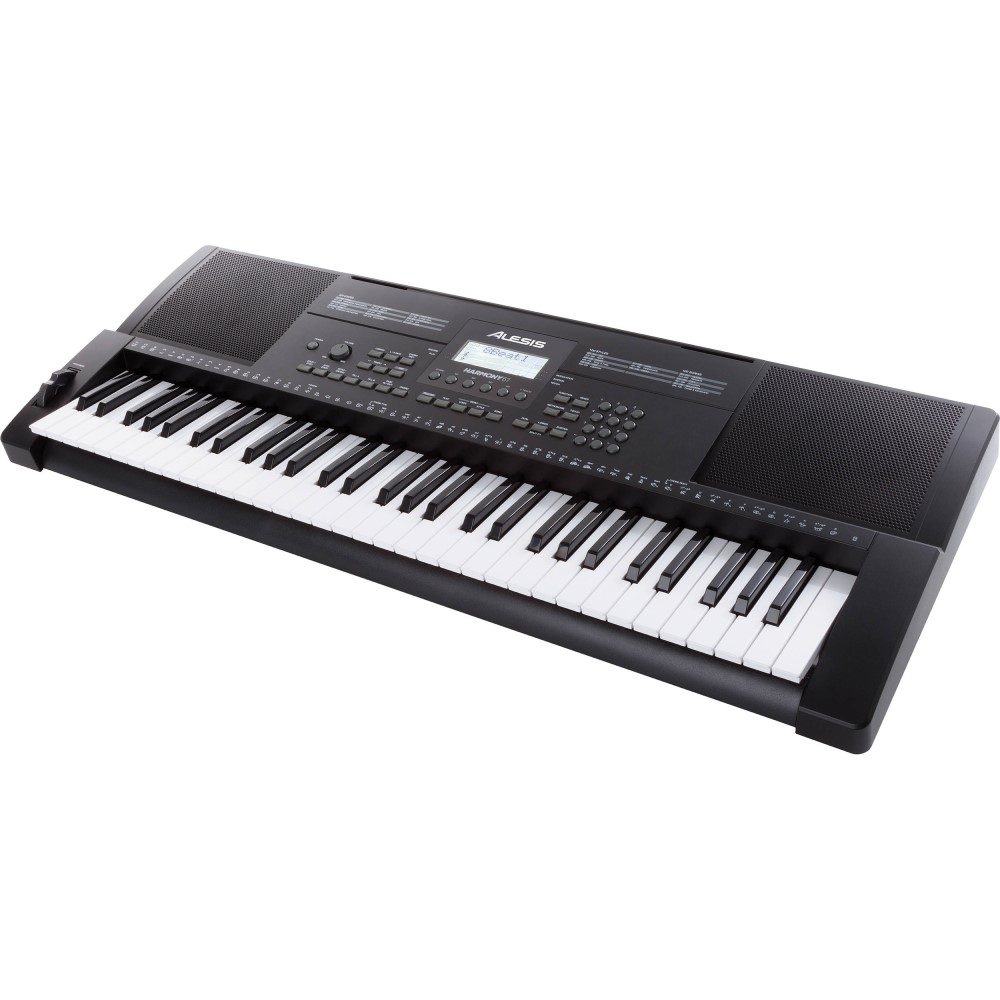 The Alesis Harmony 61 MKII keyboard has 61 piano-style keys, built-in speakers, and 300 built-in sounds covering a wide variety of instruments--pianos, strings, brass, woodwinds, percussion, mallets, guitars, synths, even sound effects! You can layer multiple sounds together in “Dual” mode, or split two sounds across the keyboard in “Split” mode. Harmony 61 MKII also has 40 built-in demo songs and 300 built-in accompaniment rhythms that enable you to instantly create songs in a wide variety of genres. You can even record your own songs using the “Record” mode!