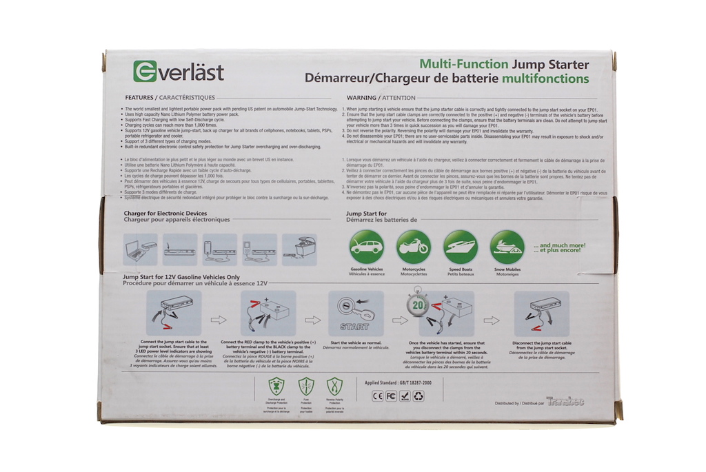 • Peut démarrer des véhicules 12V, charge de secours pour tous