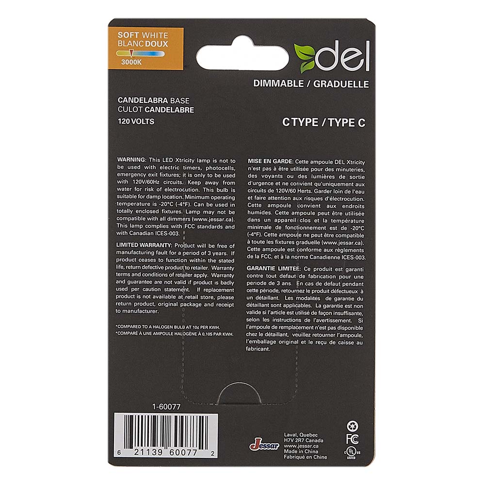 DEL TYPE C 3.5W 120V 300LM CAND. CLAIR