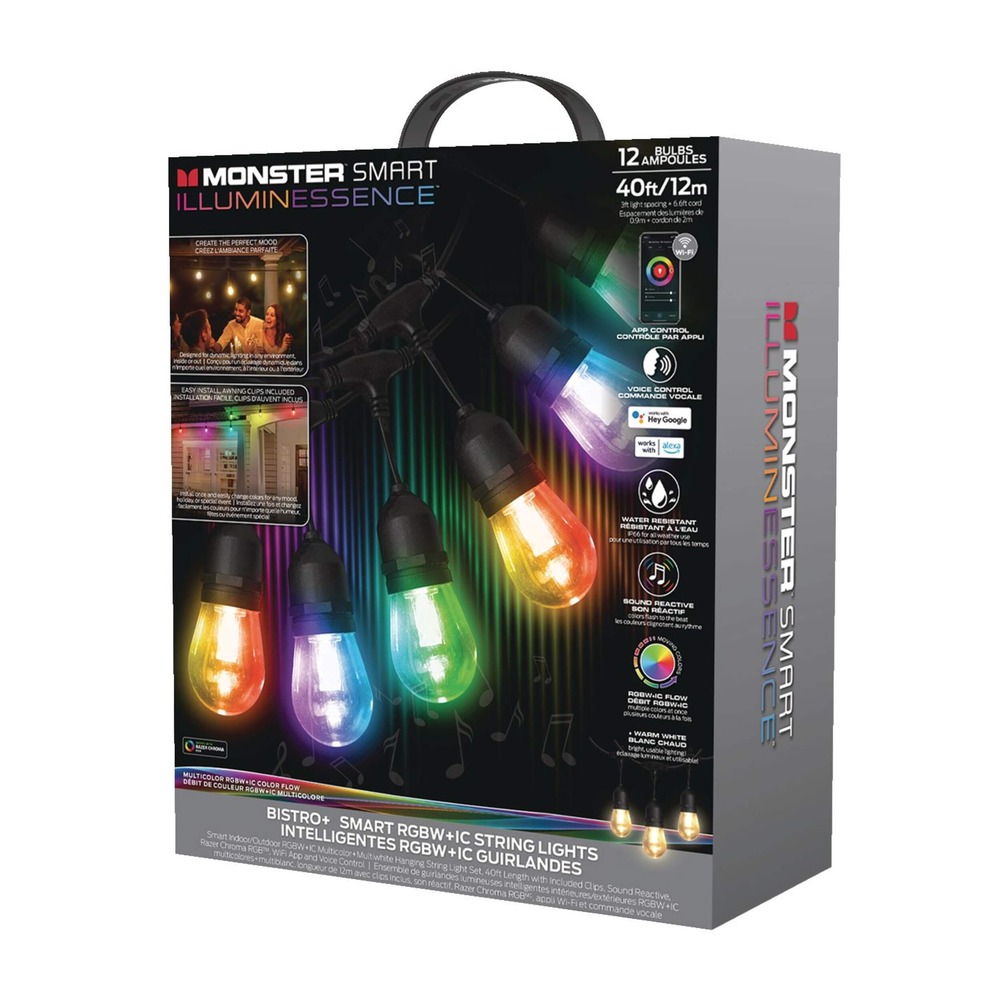 Add an inviting glow to your patio, with the Monster Smart Illuminessence Patio LED string lights. This bistro style light string set offers multicolour lighting, to create your desired effect. These lights are compatible with Siri, Alexa, and Google Assistant, so you can control them from anywhere.