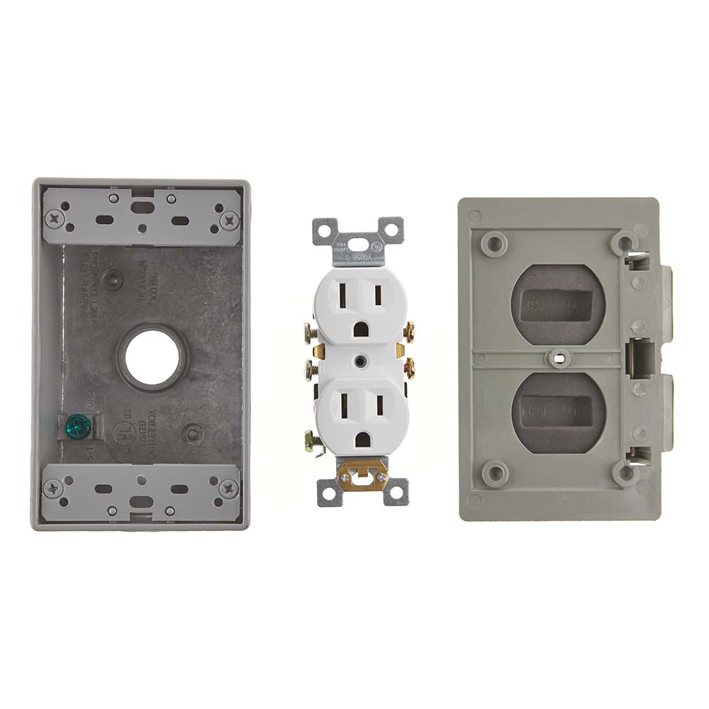 BOITE ETANCHE PRISE DOUBLE 15A -GRIS
