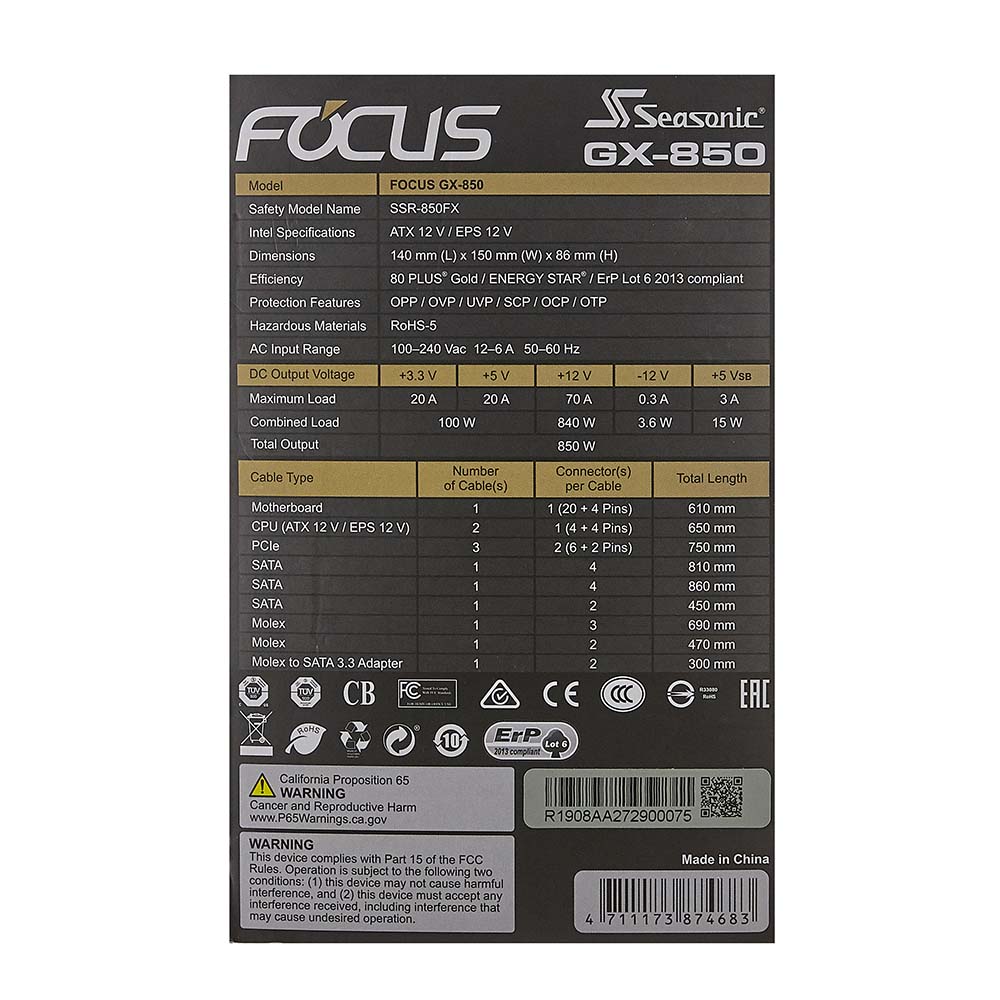 POWER SUPPLY SEASONIC FOCUS GX-850W