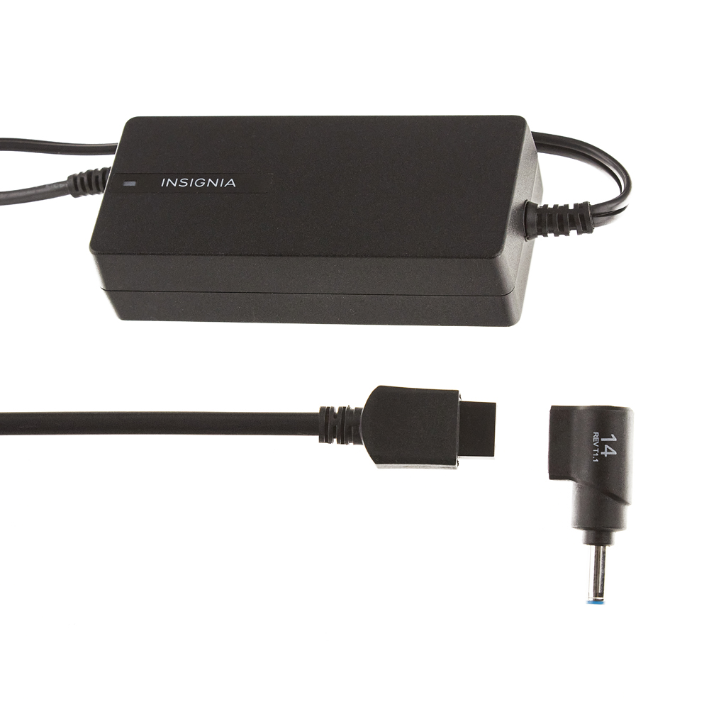 The Insignia universal 90W laptop charger includes six voltage controlling tips for compatibility with most laptops. The durable design makes it convenient to use anywhere and it plugs into any standard AC output.