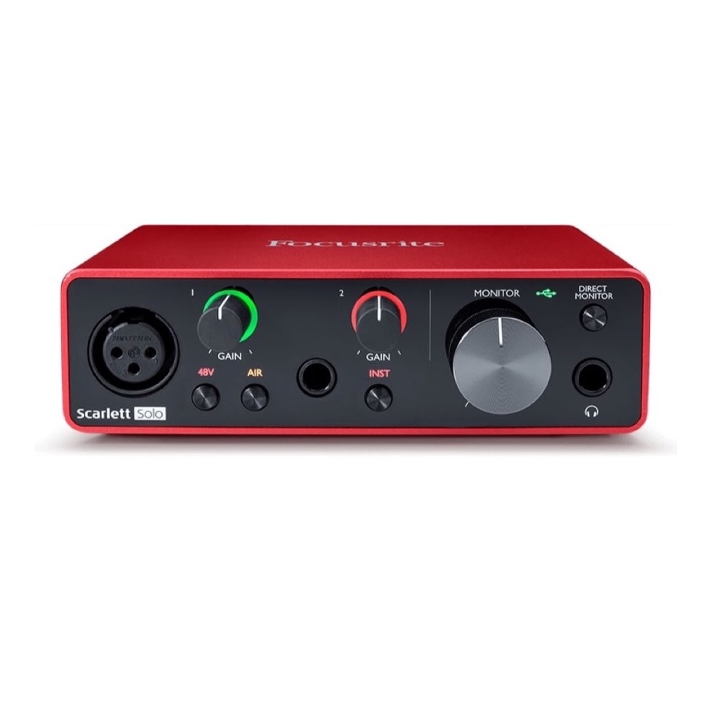 THE PERFECT AUDIO INTERFACE FOR A SINGER-SONGWRITER You’ve found the simplest USB audio interface we make. If you want to start creating studio quality recordings with your guitar, the 3rd Generation Scarlett Solo provides an easy way in. THE INTERFACE WE'VE ALL BEEN LOOKING FOR Scarlett’s most compact interface – thousands of guitar players use Solo to capture studio-quality sound every day. Capture your music anywhere by simply plugging your guitar straight in or miking up, and monitoring directly for latency-free foldback. Scarlett Solo is giving musicians worldwide professional sounding results everywhere, all the time. THE BEST SOUNDING, EASILY Getting studio-quality recordings at home has never been easier. Quick Start gets you set up, recording and playing back within minutes. Our mic preamps, high-headroom instrument inputs and now-iconic Gain Halos mean the science of sounding great is sorted. We’ve worried about the tech, you can focus on the music. YOUR RECORDING IS 30 YEARS IN THE MAKING We’ve been making mic preamps for 30 years, and the 3rd Gen mic pre is the best Scarlett has ever heard. The 24-bit/192kHz converters give your recordings clarity and detail. Air mode breathes life into vocals, adding unique high-end detail. Our decades of experience mean Scarlett sounds just like you. OUR TECHNOLOGY IS SOUND Incredibly reliable, Focusrite hardware won’t let you down. If, however, you come across a problem you can rely on our global support team and your two-year warranty to get it sorted. Sound.