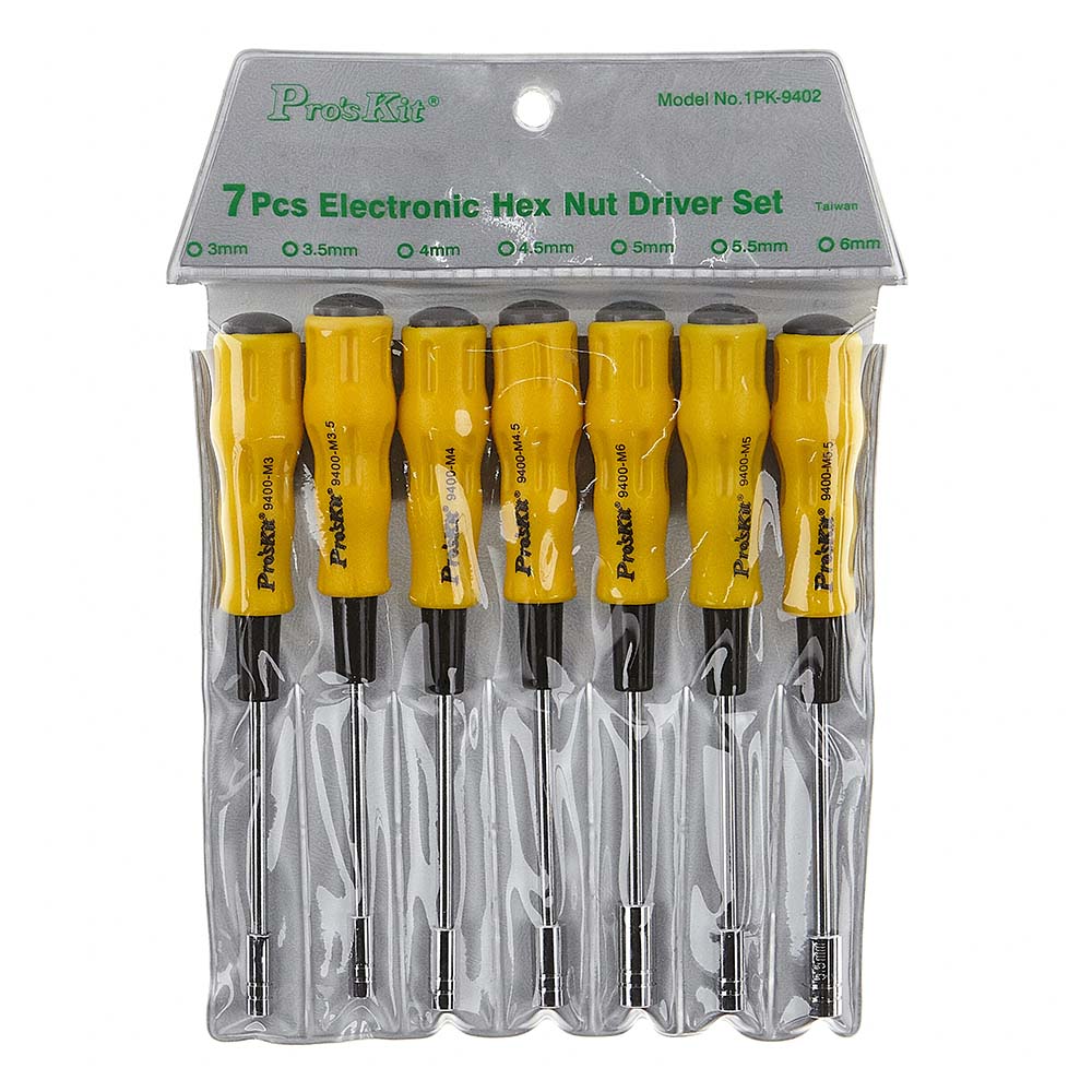 Extra-thin walled metric hex nut driver set, with duplex color rubber handles for hexagon nuts and bolts.Complete set pack contains 7 different hex nut drivers with vinyl storage pouch.