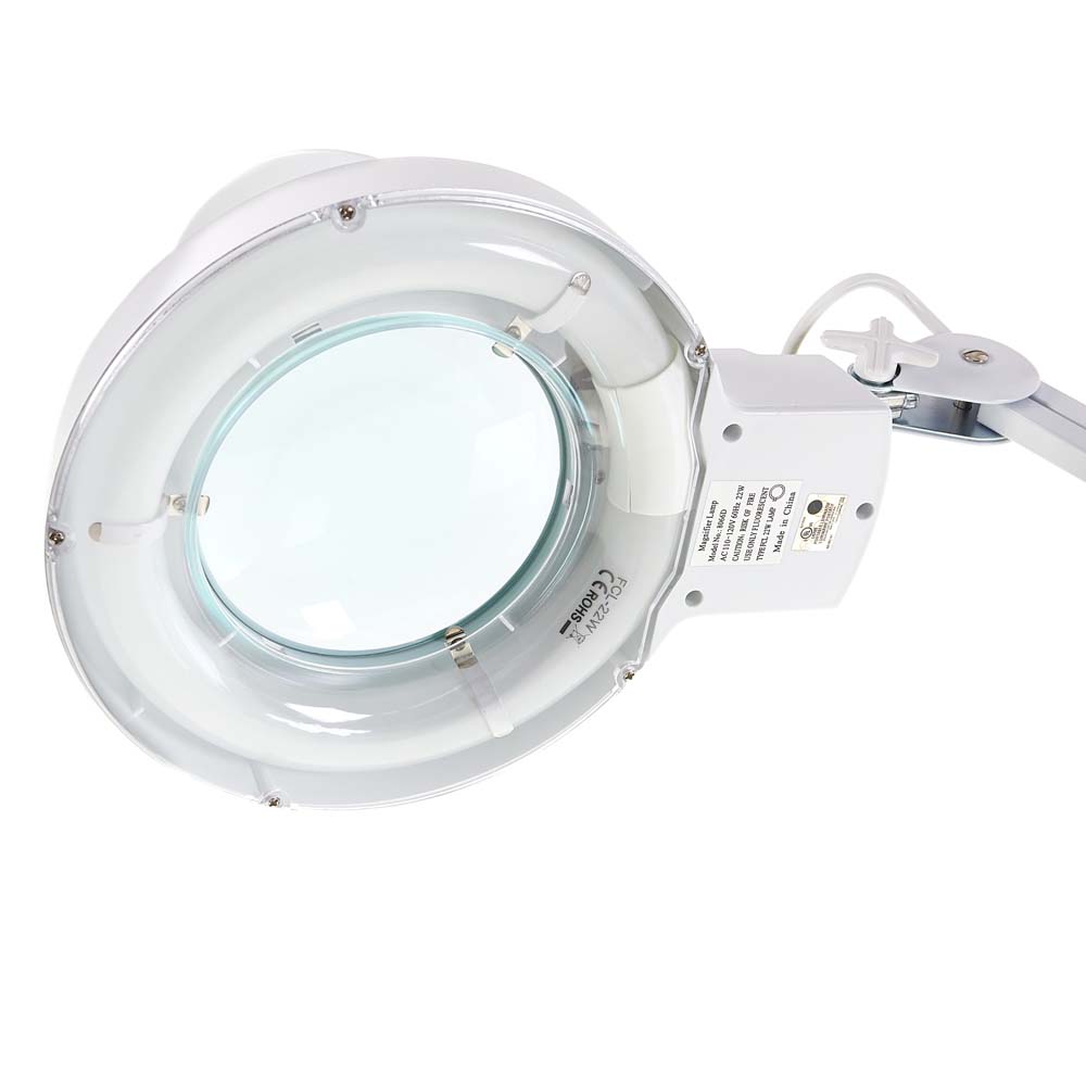 LAMPE NEON ROND-LOUPE BLANCHE SUR BRAS