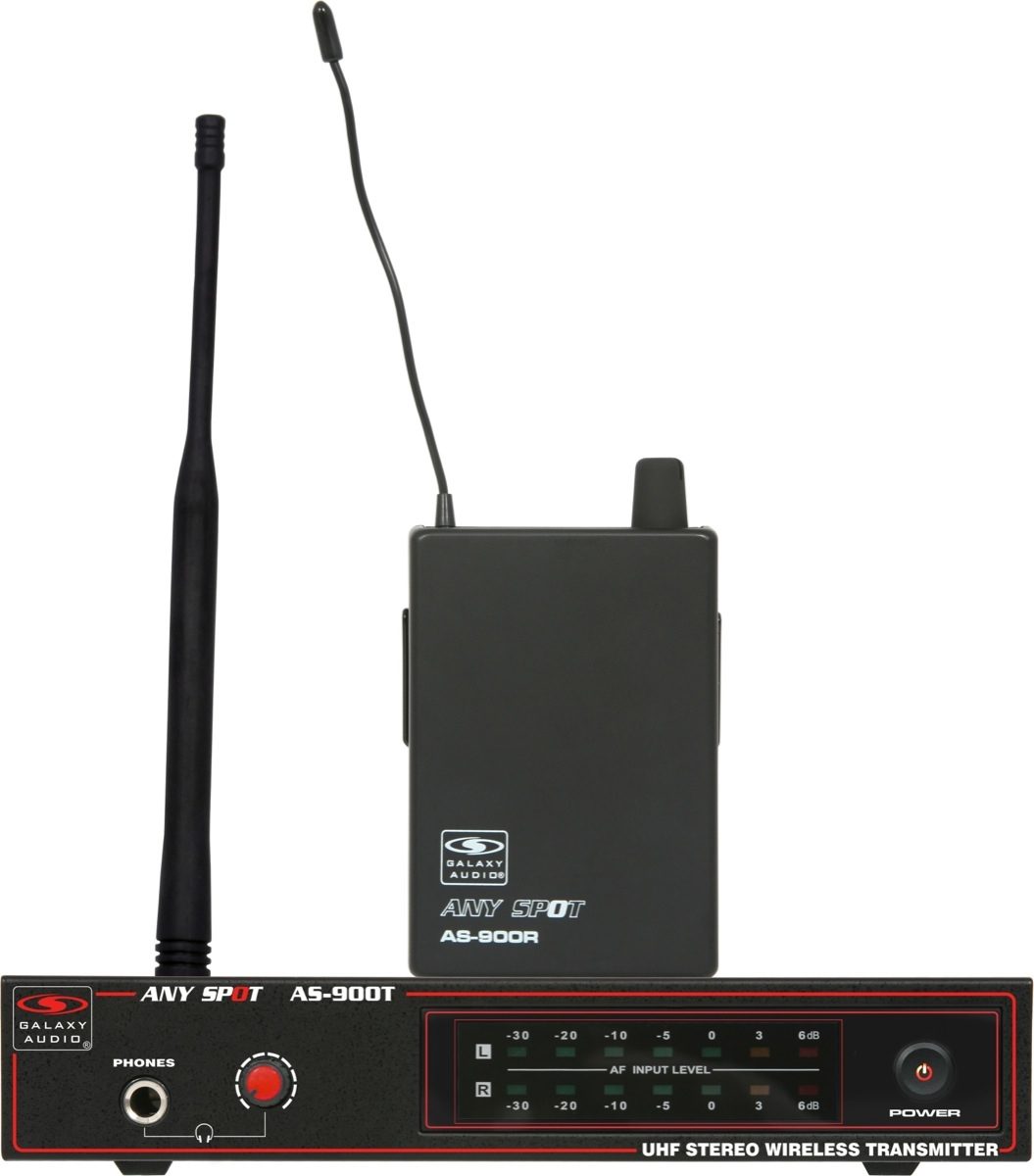 The AS-900 is a great entry-level Wireless Personal Monitor. This system features an 80mW receiver output. The receiver also contains an RF and low battery indicator. The transmitter has L/R level display, stereo XLR/1/4" inputs and an headphone output with volume control. The AS-900 is a fixed frequency unit.