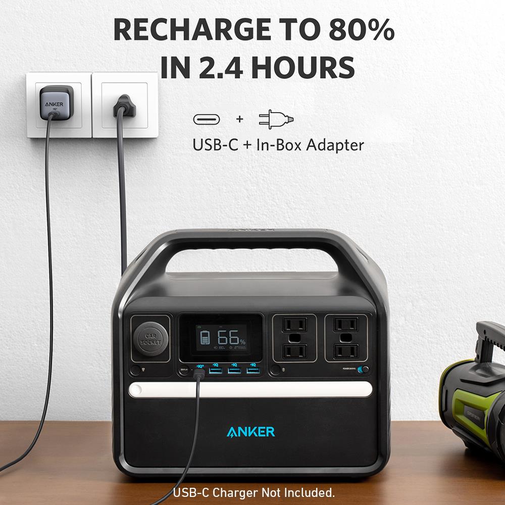 Quickly recharge your portable power generators to 80% in less than 2.5 hours using the included adapter and a USB-C port, ideal for emergencies or outdoor activities.