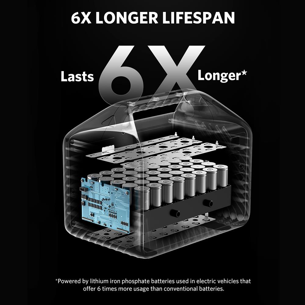 Equipped with a drop-proof unibody structure and premium LiFePO4 batteries that offer 6 times longer lifespan (expected to remain in a healthy state for 3,000 charge cycles), Anker 535 Power Station with 512Wh capacity can power your devices every day for 10 years. It includes 9 ports for all: 4 AC ports, 3 USB-A ports, 1 USB-C port and 1 car outlet. Charge your essential devices during outdoor (camping, fishing, etc.) or blackouts.