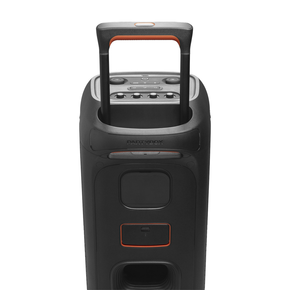 Avec la JBL PartyBox Stage 320, vous pouvez commencer à faire la fête à tout moment, n’importe où. Transformez n’importe quel espace, intérieur ou extérieur, en piste de danse. Le son JBL Pro puissant et les graves puissants remplissent une large scène et font bouger la foule, tandis qu’un jeu de lumière adaptatif de lumières étoilées tourbillonnantes, de traînées lumineuses et d’incroyables effets stroboscopiques synchronisés avec votre rythme leur en met plein la vue. Utilisez les entrées micro et guitare pour accentuer votre présence sur scène. Vous pouvez diriger le flux de la fête tout au long de la nuit avec des effets sonores interactifs amusants. La poignée télescopique solide et les larges roulettes larges robustes vous permettent d’emporter avec vous la JBL PartyBox Stage 320 pratiquement où vous voulez, et une fois sur place, la construction anti-éclaboussures empêchera qu’une petite averse ne vienne gâcher votre soirée. Mieux encore, elle offre jusqu’à 18 heures d’autonomie. Et si la fête bat son plein, il vous suffit de changer la batterie remplaçable pour continuer la musique. Pour une soirée encore plus grandiose, vous pouvez facilement connecter ou utiliser l’application JBL PartyBox pour connecter plusieurs enceintes compatibles JBL Auracast sans fil. Rassemblez les gens et améliorez l’expérience grâce à la JBL PartyBox Stage 320.