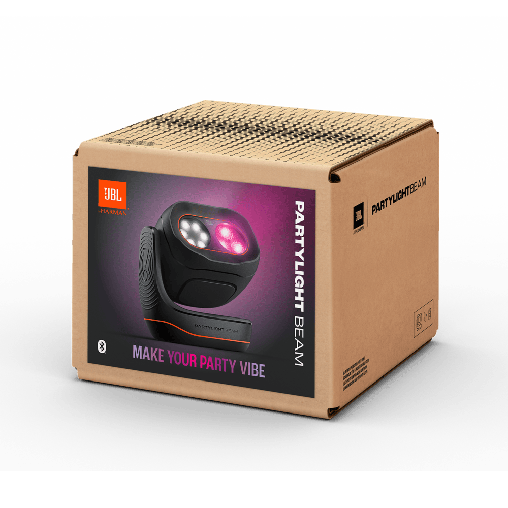 Créez une ambiance de fête Une fête inoubliable ne se résume pas seulement à un son exceptionnel, elle doit aussi être sublime. Créez votre propre ambiance immersive grâce au JBL PartyLight Beam. Ce projecteur se synchronise sans fil avec vos enceintes JBL PartyBox pour projeter une lumière festive colorée et cinétique, suffisamment puissante pour illuminer une grande pièce, sur n'importe quel mur ou plafond. (Et si vous organisez une fête dans un espace encore plus grand, vous pouvez synchroniser plusieurs PartyLight Beam pour créer un spectacle lumineux chorégraphié en moins d'une minute.) Ajustez l'angle pour centrer le spectacle lumineux où vous le souhaitez et laissez les couleurs vibrantes s'harmoniser avec l'énergie de votre soirée tout au long de la nuit : des rythmes d'ambiance doux aux rythmes dance épiques, en passant par le pur délire des moments forts de votre soirée. Contrôlez les réglages de mouvement, de vitesse et d'intensité rapidement et facilement grâce à l'application JBL One ou PartyBox. Sublimez votre espace de fête grâce à l'association imbattable de la JBL PartyBox et du JBL PartyLight Beam.