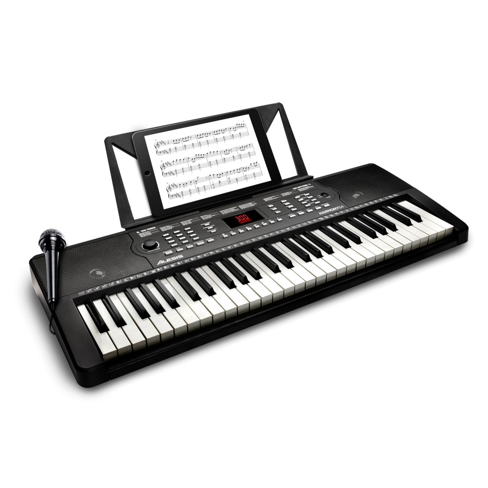 Apprendre à jouer des touches est devenu beaucoup plus facile ! Le clavier Alesis Melody 54 combine 54 touches de style piano, des haut-parleurs intégrés, 300 sons intégrés avec modes de superposition et de division, 300 rythmes intégrés pour jouer en même temps, 40 morceaux de démonstration, une entrée casque qui coupe automatiquement les haut-parleurs pour pratique privée, un pupitre pour tenir des partitions ou une tablette, un adaptateur secteur et même un microphone pour chanter pendant que vous jouez.