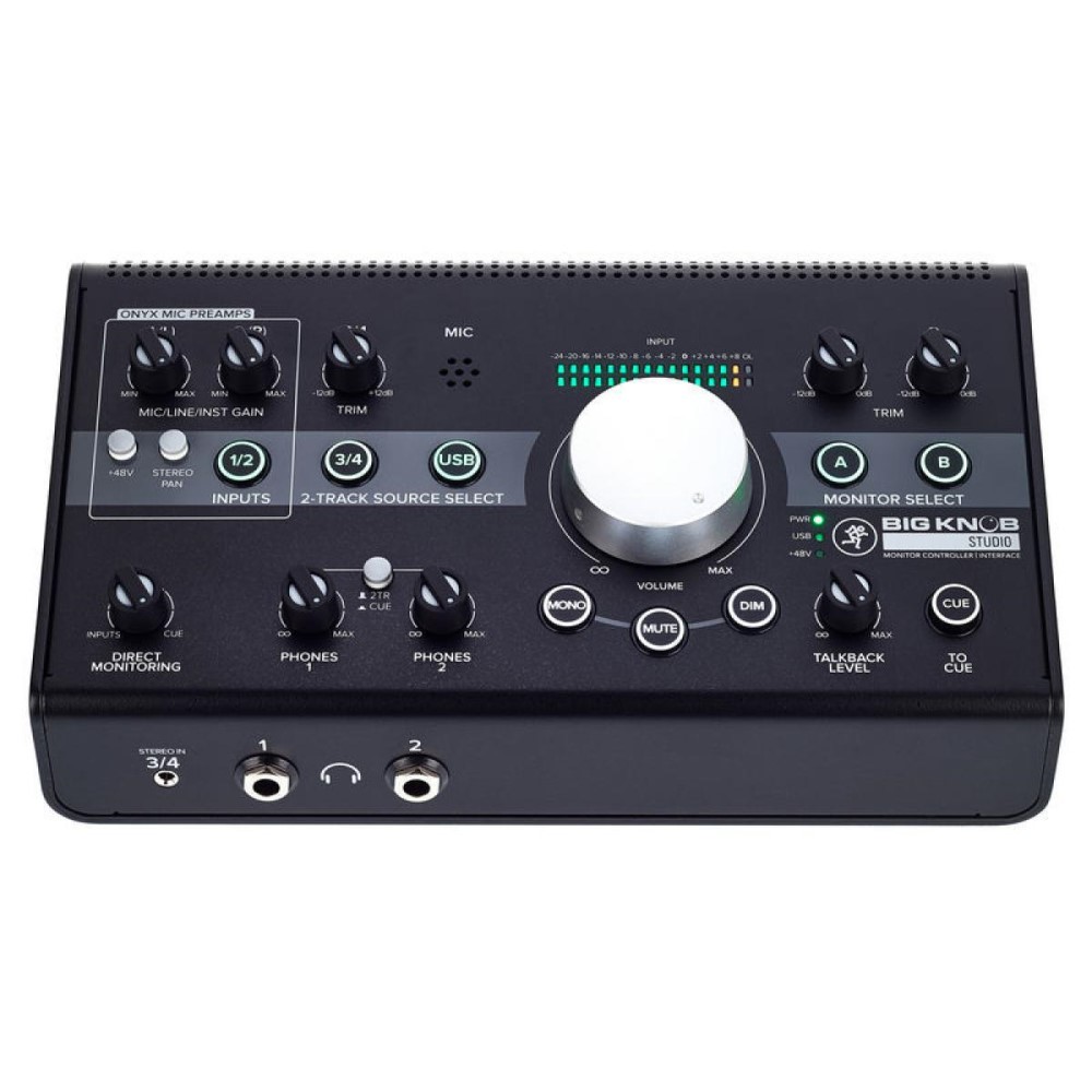 Arrêtez de scroller et de vous embêter avec votre souris ! Découvrez le Mackie Big Knob Studio : appuyer sur de vrais boutons est bien plus agréable que cliquer sur des boutons virtuels. Profitez d'un contrôle de niveau réel et pratique avec commutation d'entrée et de moniteur, et disposez de tout le nécessaire pour des sessions d'enregistrement de haute qualité grâce à une interface d'enregistrement 192 kHz/24 bits complète et un réseau d'ordres intégré. Deux préamplis Mackie Onyx et deux sorties casque avec contrôles de niveau indépendants rendent l'enregistrement en studio incroyablement simple et efficace.