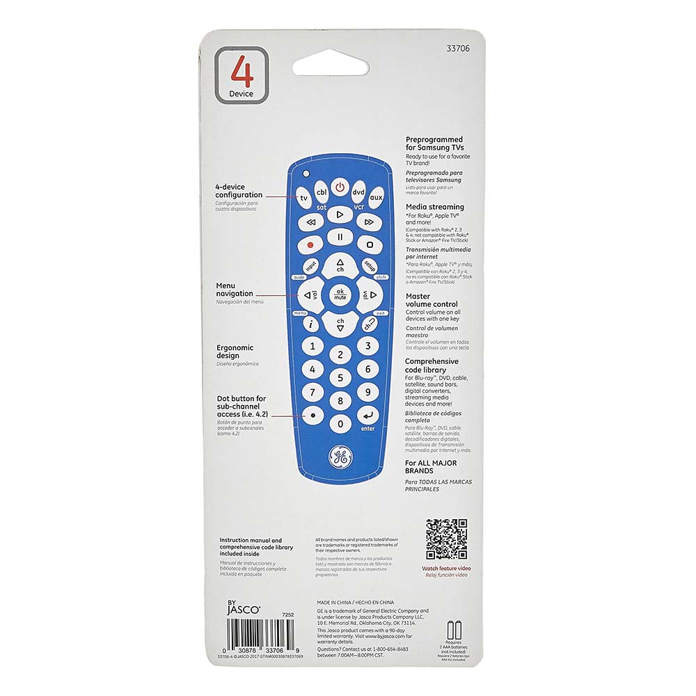 TELECOMMANDE GE 4-EN-1 BLEU