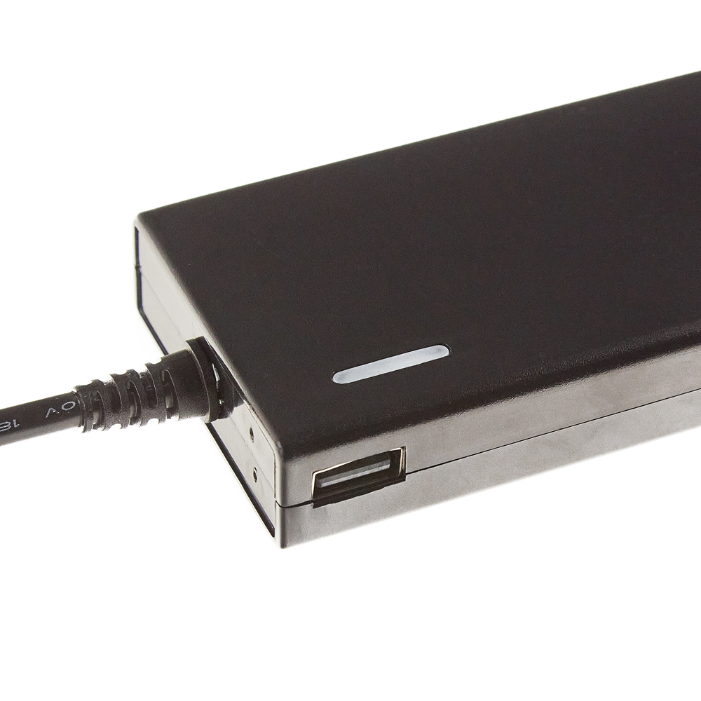 Ce chargeur universel de 90 W comprend dix embouts de contrôle de la tension afin d'être compatible avec la plupart des portables. Ce modèle robuste peut être utilisé n'importe où et il se raccorde à n'importe quelle sortie c.a. standard.