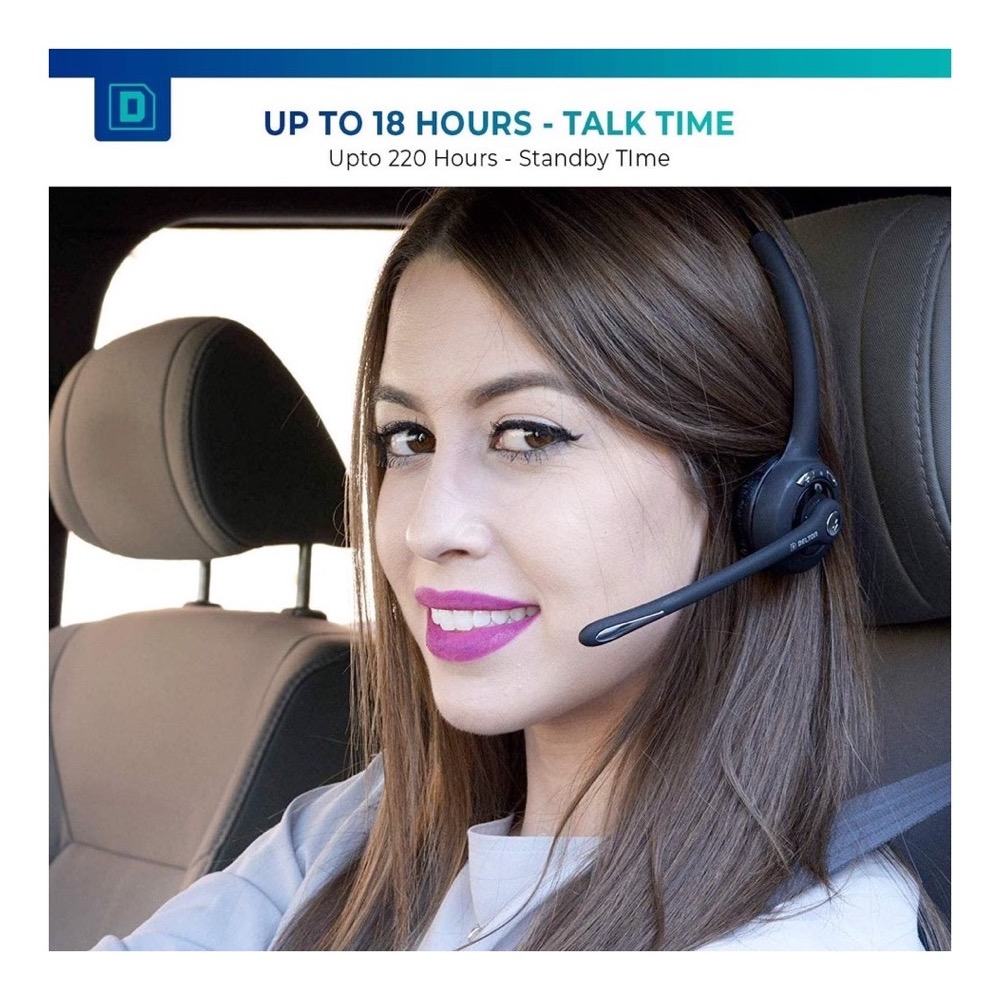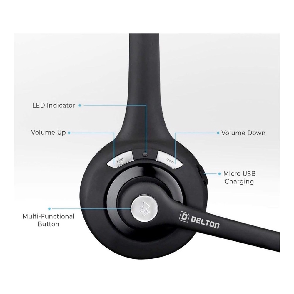 Augmentez l'efficacité du centre d'appels ou le confort de conduite avec ce casque Bluetooth sans fil à réduction de bruit au-dessus de la tête de Delton. Annulez le bruit pour des appels d'une clarté cristalline en utilisant ce casque mains libres. Ce casque léger est doté de la technologie Multi-Point qui permet des connexions à deux appareils en même temps. Le microphone de haute qualité de ce casque offre un son clair à la fois à l'appelant et à l'auditeur.