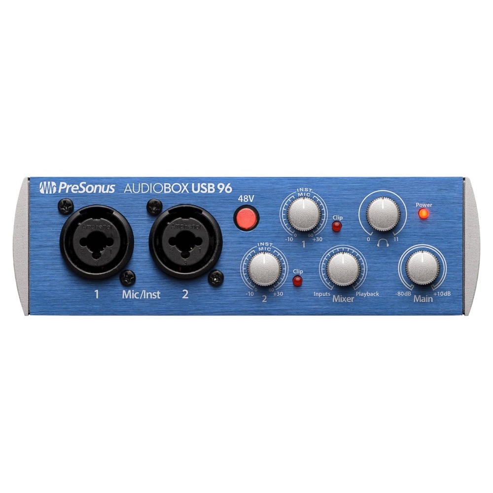 Simple, fiable et transportable. Que vous soyez musicien, producteur ou podcasteur à petit budget, l'AudioBox USB® 96 est fait pour vous! Cette petite interface d'enregistrement simple et pratique a juste les bonnes fonctionnalités pour les besoins d'enregistrement de base, vous permettant de brancher et de commencer à enregistrer jusqu'à 24 bits, 96 kHz audio immédiatement. Alimenté par bus et conçu pour voyager, l'AudioBox USB 96 facilite l'enregistrement. Juste la bonne taille. Les deux entrées combo micro / instrument de l'AudioBox USB 96 en façade le rendent idéal pour les auteurs-compositeurs-interprètes, les podcasteurs et les collaborations guitare ou guitare-basse. Connectez simplement quelques micros et vous disposez d'un système d'enregistrement stéréo facile à utiliser. Une commande de mixage vous permet de contrôler le niveau entre le signal d'entrée et la lecture de l'ordinateur, sans entendre de retards gênants. Vous bénéficiez également d'une paire de sorties de niveau ligne symétriques, d'une sortie casque ultra-puissante et cristalline, ainsi que d'E / S MIDI, afin que vous puissiez connecter votre synthétiseur ou contrôleur MIDI préféré. Le résultat est une solution d'enregistrement mobile simple et abordable. En état de marche et prêt à voyager. Voici une interface mobile dans le meilleur sens du terme. Nous avons donné à l'AudioBox USB 96 un châssis en acier robuste pour qu'il puisse supporter des coups sérieux et rester complètement fiable. Sa sortie casque hurlante vous permet d'entendre votre musique haut et fort, même dans les endroits bruyants. Et il est alimenté par bus USB 2.0, vous pouvez donc enregistrer partout où vous pouvez utiliser un ordinateur portable. Déposez-le simplement dans la sacoche de votre ordinateur portable ou posez-le sur une table.