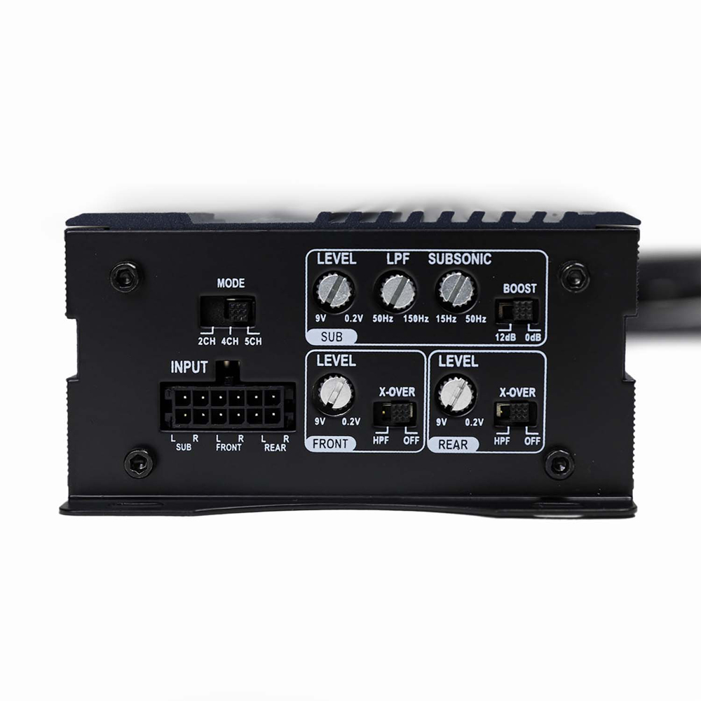 Quatre canaux et avec canal subwoofer dédié : la conception unique permet à cet amplificateur d'alimenter des haut-parleurs large bande avec un canal dédié pour un subwoofer.