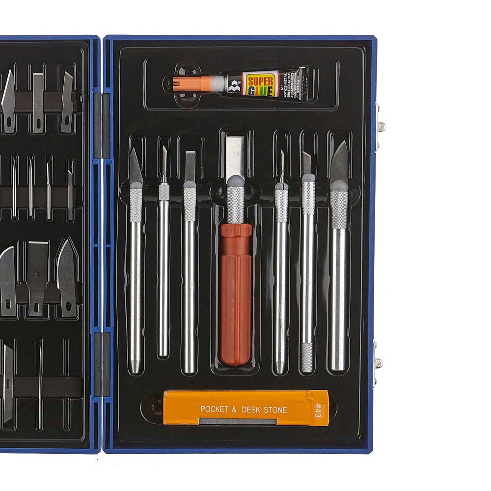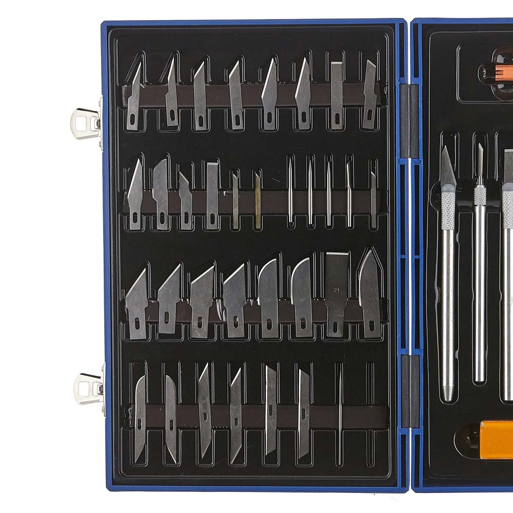 ENS 48PCS COUTEAUX EXACTO COFFRE EN BOIS