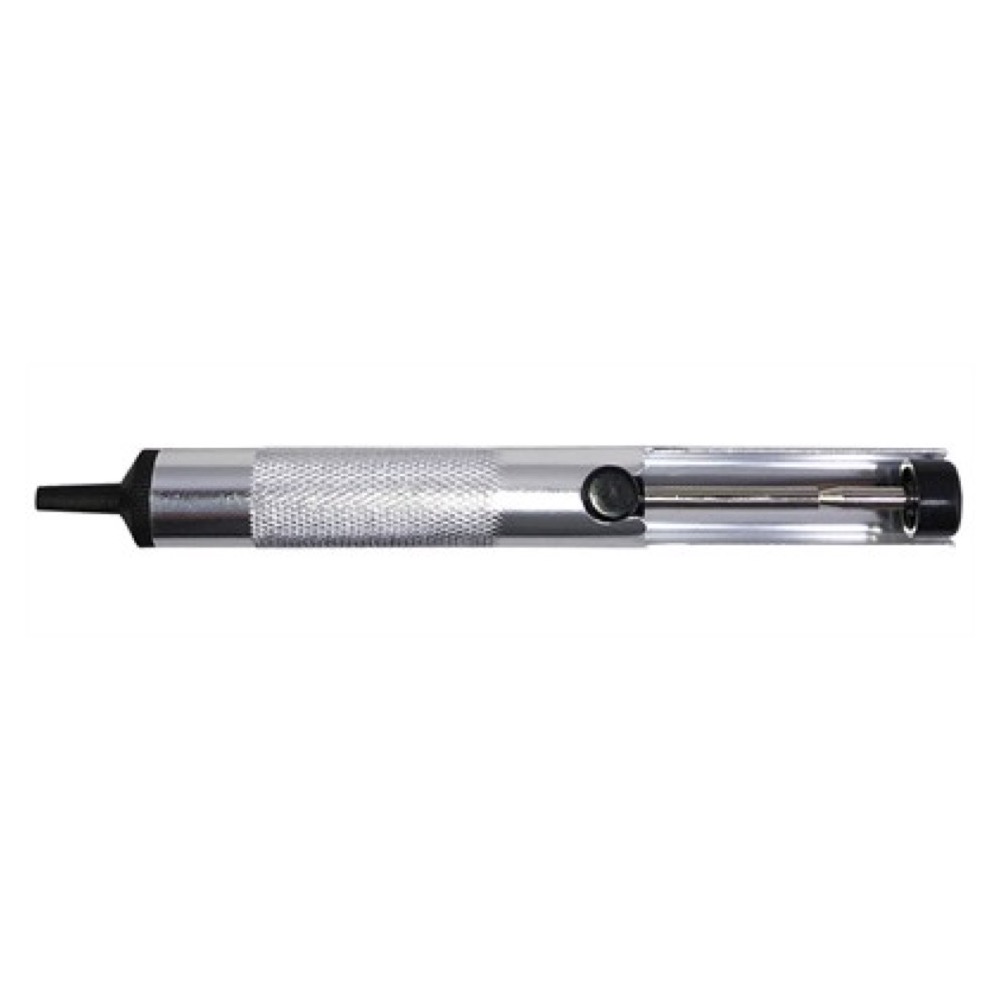 Outil de dessoudage manuel compact avec protection ESD. Chargez, verrouillez et activez simplement la gâchette pour produire un vide et aspirer la soudure fondue dans la chambre.