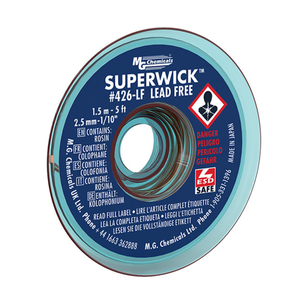 426-LF Super Wick pour soudure sans plomb, diamètre 0,10" × longueur 5 pi, Bleu