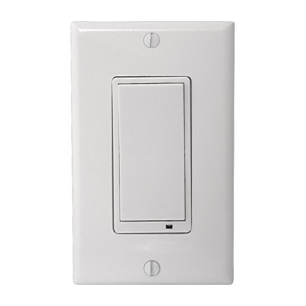 Interrupteur mural marche/arrêt de marque Linear, modèle WS15Z, possédant un module de contrôle Z-Wave, pouvant se connecter a un contrôleur de domotique.